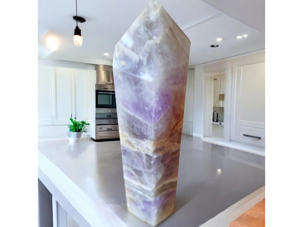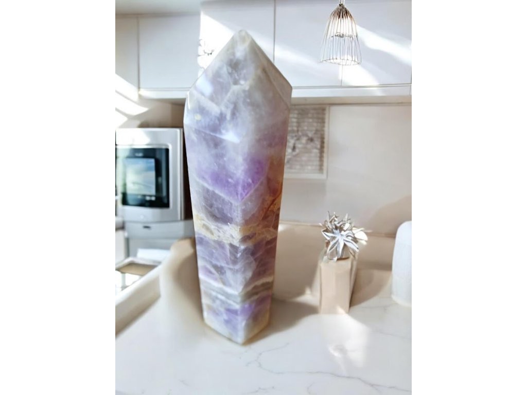 Ametyst je silný ochranný krystal, který podporuje vnitřní klid, pomáhá při stresu a posiluje intuici. Tato špice je ručně broušená a leštěná, pochází z Madagaskaru a zaujme svou sytě fialovou barvou i jedinečnou kresbou.