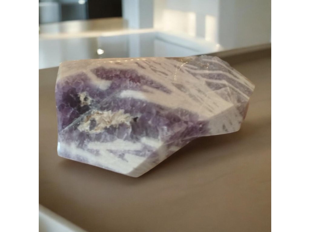 Ametyst je silný ochranný krystal, který podporuje vnitřní klid, pomáhá při stresu a posiluje intuici. Tato špice je ručně broušená a leštěná, pochází z Madagaskaru a zaujme svou sytě fialovou barvou i jedinečnou kresbou.