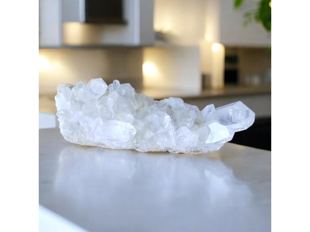 Křišťál je symbolem čistoty a světla, nazývaný také univerzálním léčitelem. Podporuje koncentraci, harmonizuje energii a čistí negativní vlivy. Díky své formaci je drúza ideální pro rozptyl pozitivní energie v prostoru.